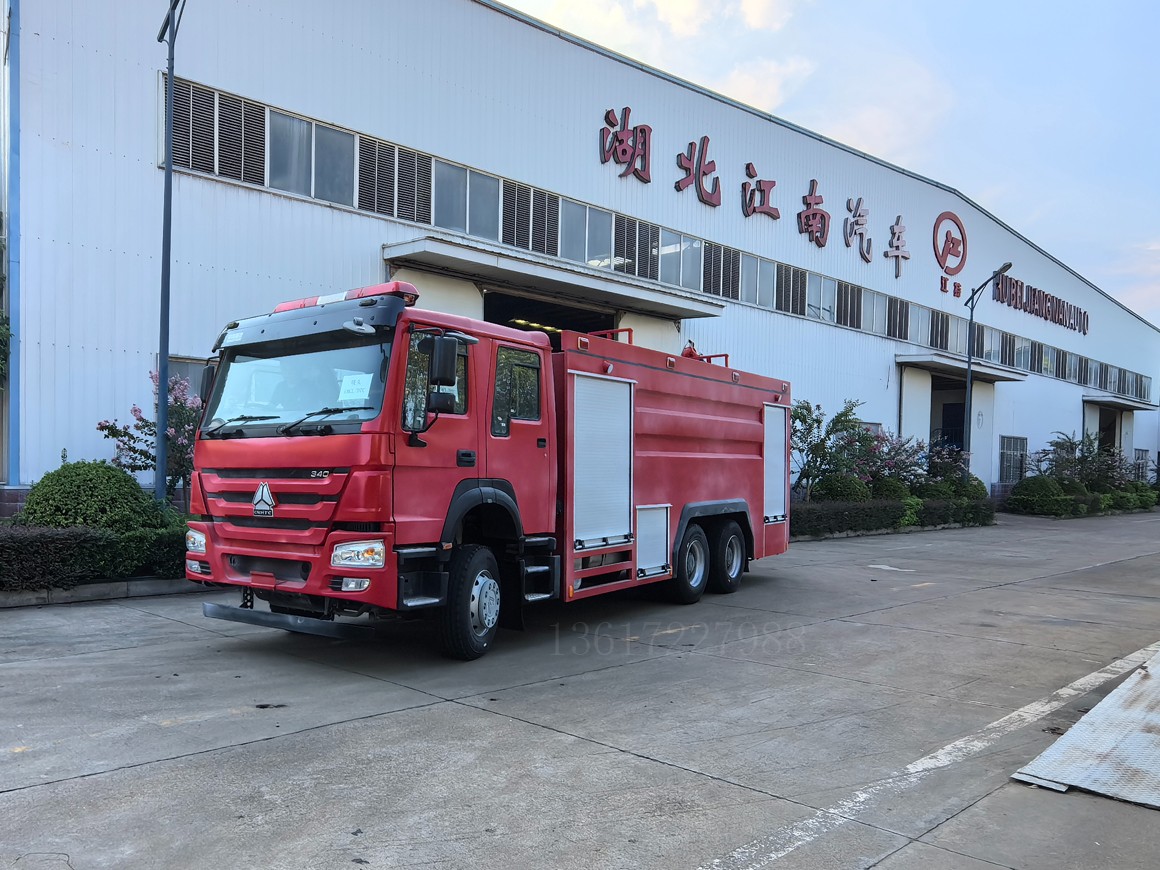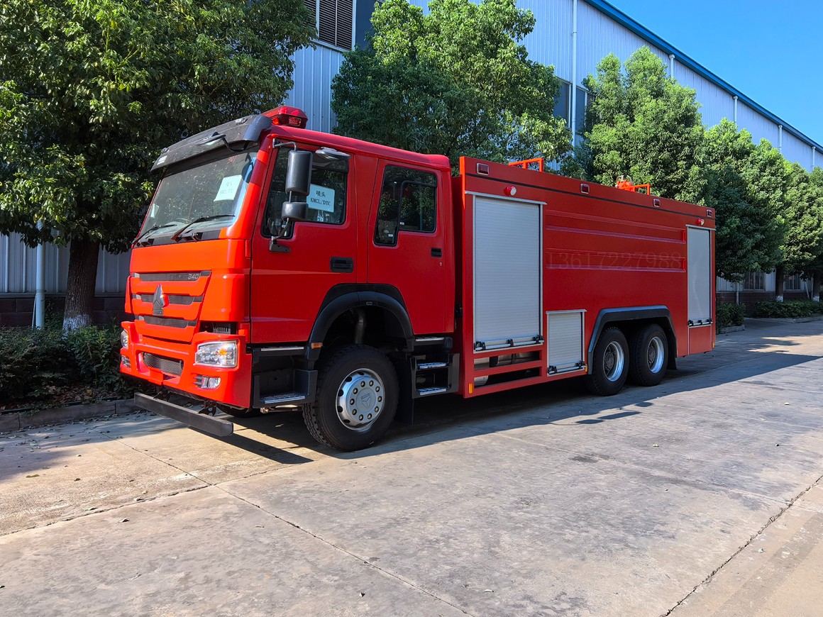 出口版16噸泡沫消防車,采用豪沃右舵底盤改裝,罐體容積16立方米,配備CB10/60消防泵,60消防炮,整車、器材采用英式接口。