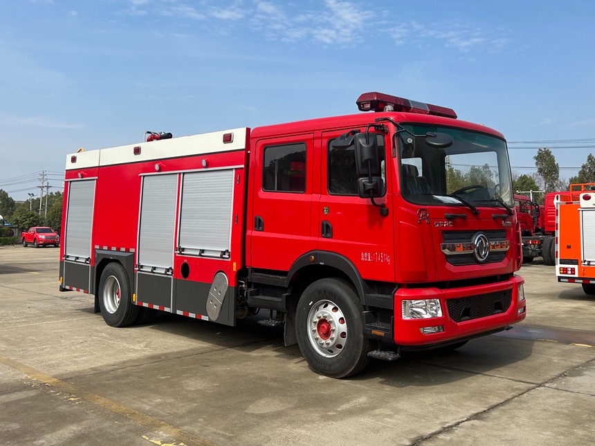 8.2噸東風D9水罐消防車采用東風EQ1185DJ9CDF底盤改裝而成。整車由消防員乘員室和車身兩大部分組成,乘員室為原裝雙排,可乘坐3+3人,康明斯B6.2NS6B230發動機,230馬力,該車為異型罐結構,車身兩側為器材箱,中部為罐體,后部為泵房。載液罐體為優質碳鋼,內部噴涂環氧底漆及環氧瀝青漆,與底盤采用彈性連接,載水量8200kg,裝備了上海茸申消防設備有限公司生產CB10/40-RS型常壓消防泵,額定流量40L/S,車頂安裝成都威斯特消防機械有限公司生產的PS8/40W型車用消防炮。該車最大的特點是載液量大、操控性好、維修簡便。可廣泛應用于公安消防隊、廠礦企業及社區、碼頭等場所,撲救大型油類火災和一般物質火災。