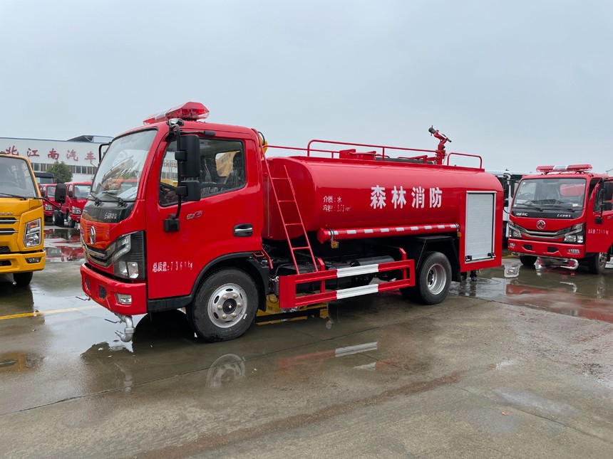 東風小多利卡消防灑水車采用東風EQ1075SJ3CDF底盤改裝, 全柴Q23-136E60 發動機,136馬力,罐體容積3.74立方米,配備CB10/20消防泵,20消防炮。