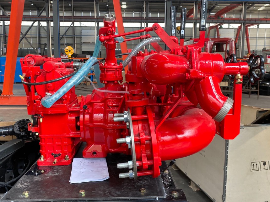 30高低壓消防泵由高、低壓離心泵級組、活塞真空泵、電磁離合器自動分離裝置、增速箱、進水管組、高、低壓出水口帶止回閥組等組成,高低壓離心泵由高低壓泵殼體、泵軸、葉輪、機械密封等組成。活塞式真空泵由泵體、雙活塞、泵軸、電磁離合器等組成。增速器由一對斜齒輪、增速箱體、齒輪軸、單列向心球軸承、連軸法蘭等組成。車用消防泵的關健件經合理選材,標準件嚴格選用。高、低壓離心泵級組由泵蓋、高壓泵殼、低壓泵殼、高壓葉輪、低壓葉輪、泵軸、機械密封等組成。該泵起到提供壓力≥4.0MPa、流量≥6L/s和壓力≥1.0MPa、流量≥30L/s的二種功能壓力水源,同時也能實現高低壓聯用功能。