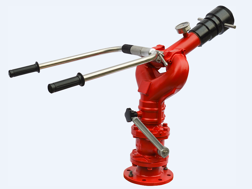 PS30/40固定式消防炮具備流量可調功能,由炮頭、炮體、球閥和操作手柄等部件組成。噴射水流時,調節位于炮頭的流量調節環可調節4檔流量,調節射流變換調節環可調節直流、開花射流形態,能適應火場滅火的多種水流要求。操作手柄操縱炮俯仰和水平回轉并設有螺紋鎖緊定位裝置,保證操作人員的使用安全。適用于固定安裝在消防車、倉儲區和港口等需要消防保護的場所。